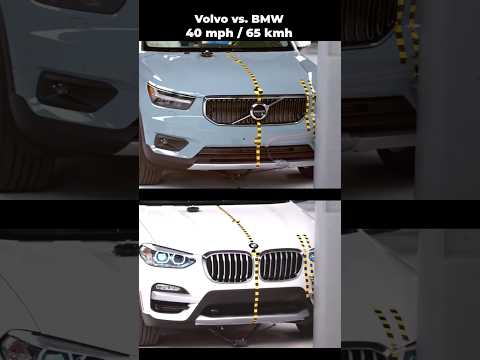 Two luxuryАвтосалоныVs go head-to-head in a 40mph small overlap crash test! Volvo and BMW collide under identical conditions to show ...